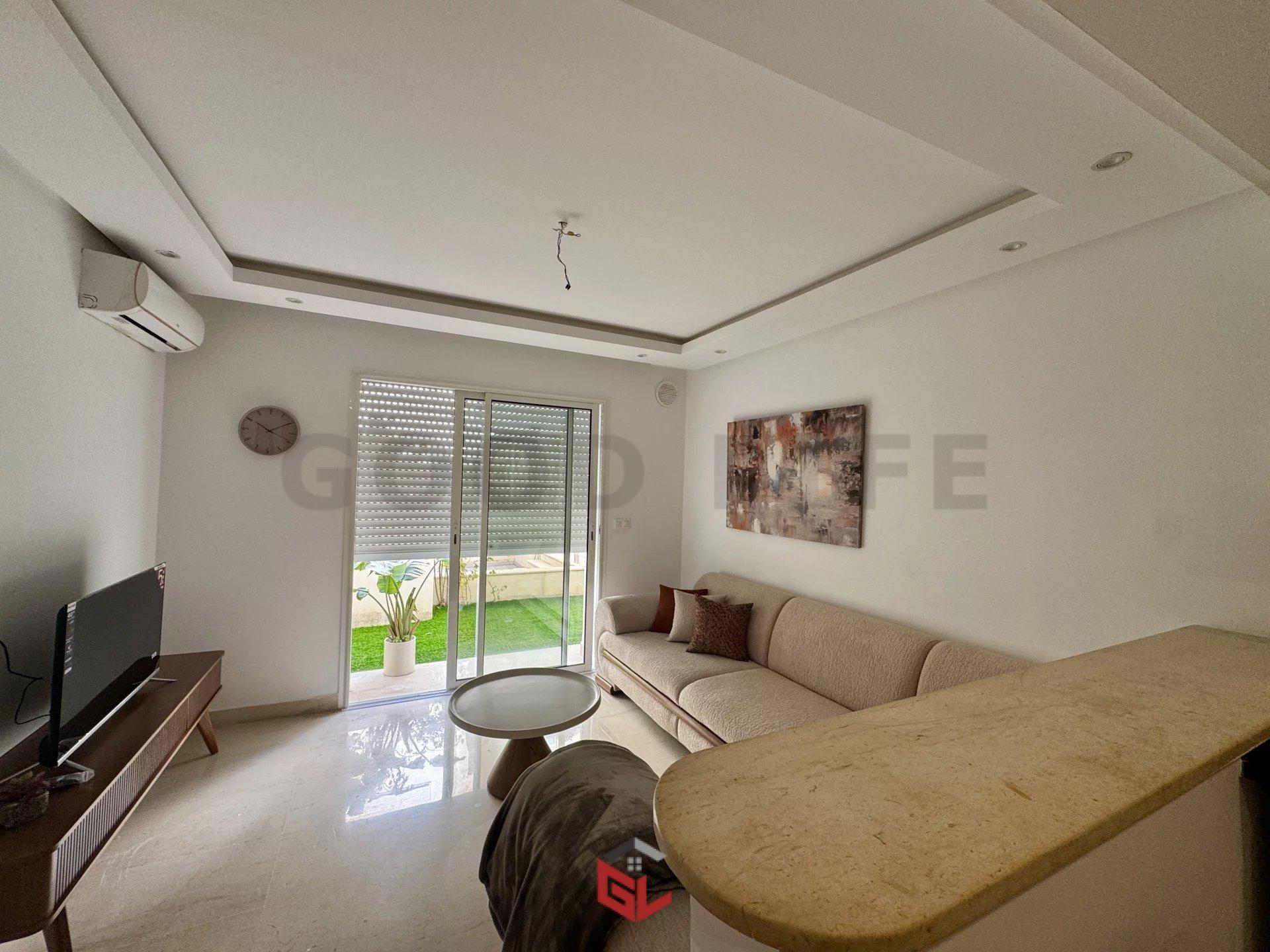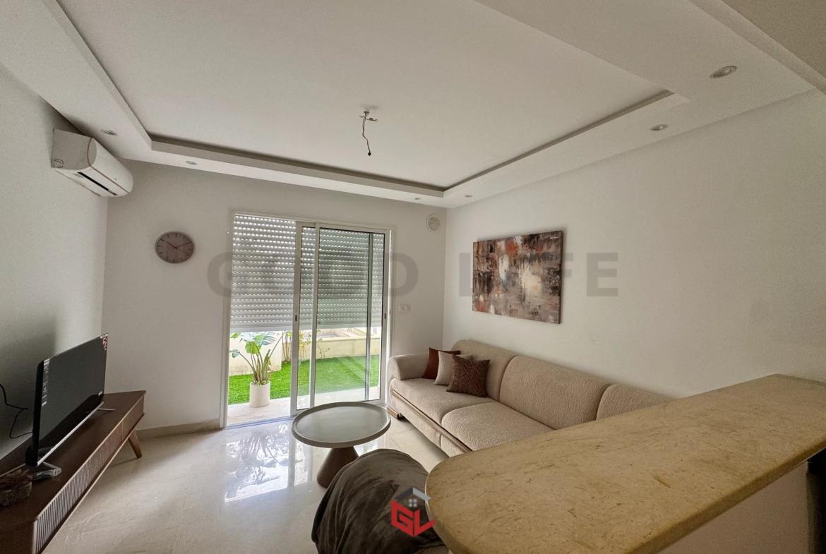 L’agence immobilière Goodlife vous propose à la location un appartement S+1 meublé avec jardin à la soukra